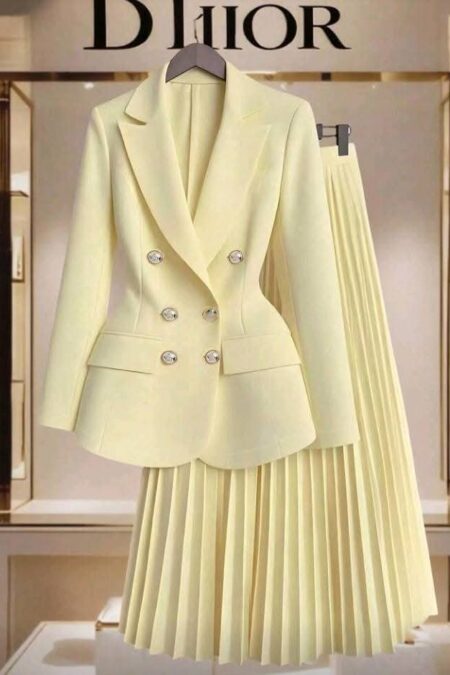 cet article est le bon choix pour tous vos fêtes, Doux et minimaliste, le modèle est doté d’une coupe classique , une veste longue et un pantalon large et taille haute
