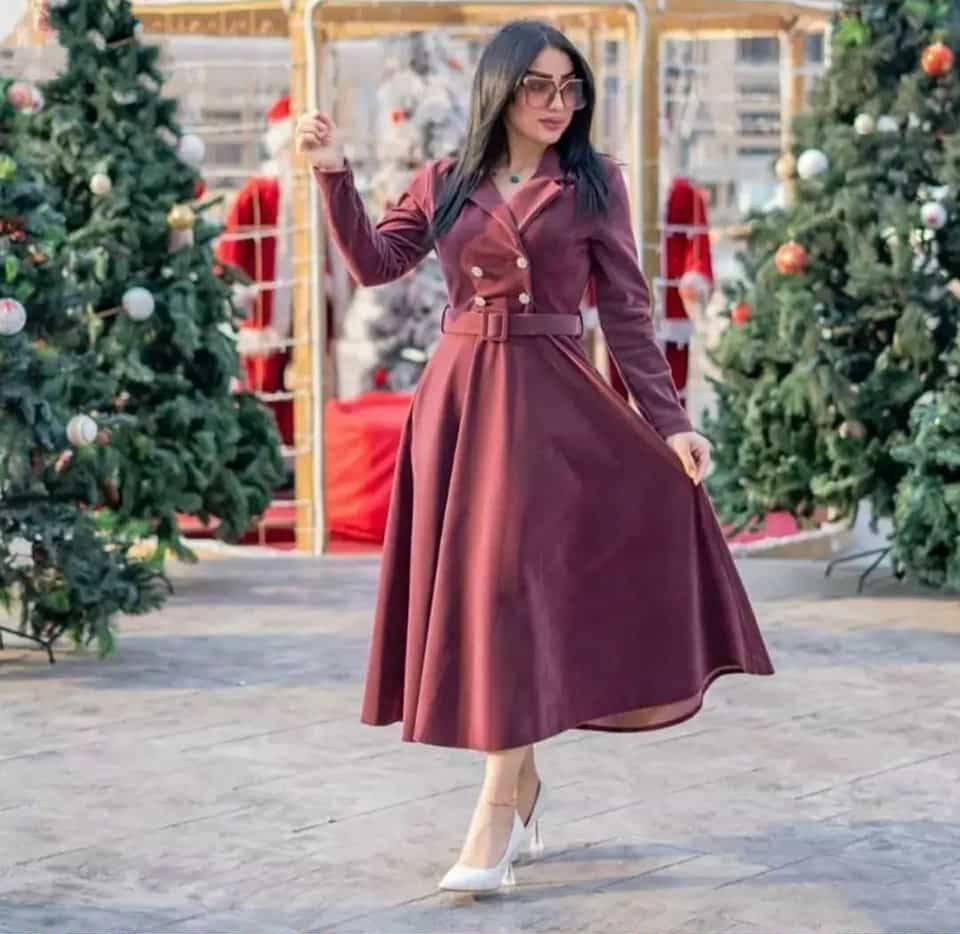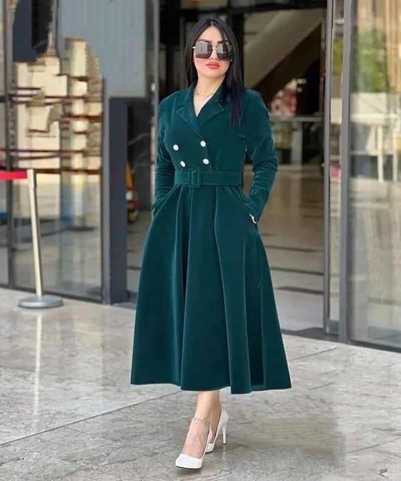 Facile à habiller ou à décontracter, cette robe à col croisé est confectionnée dans un mélange de daim , La boutons pression présente une silhouette midi ajustée.